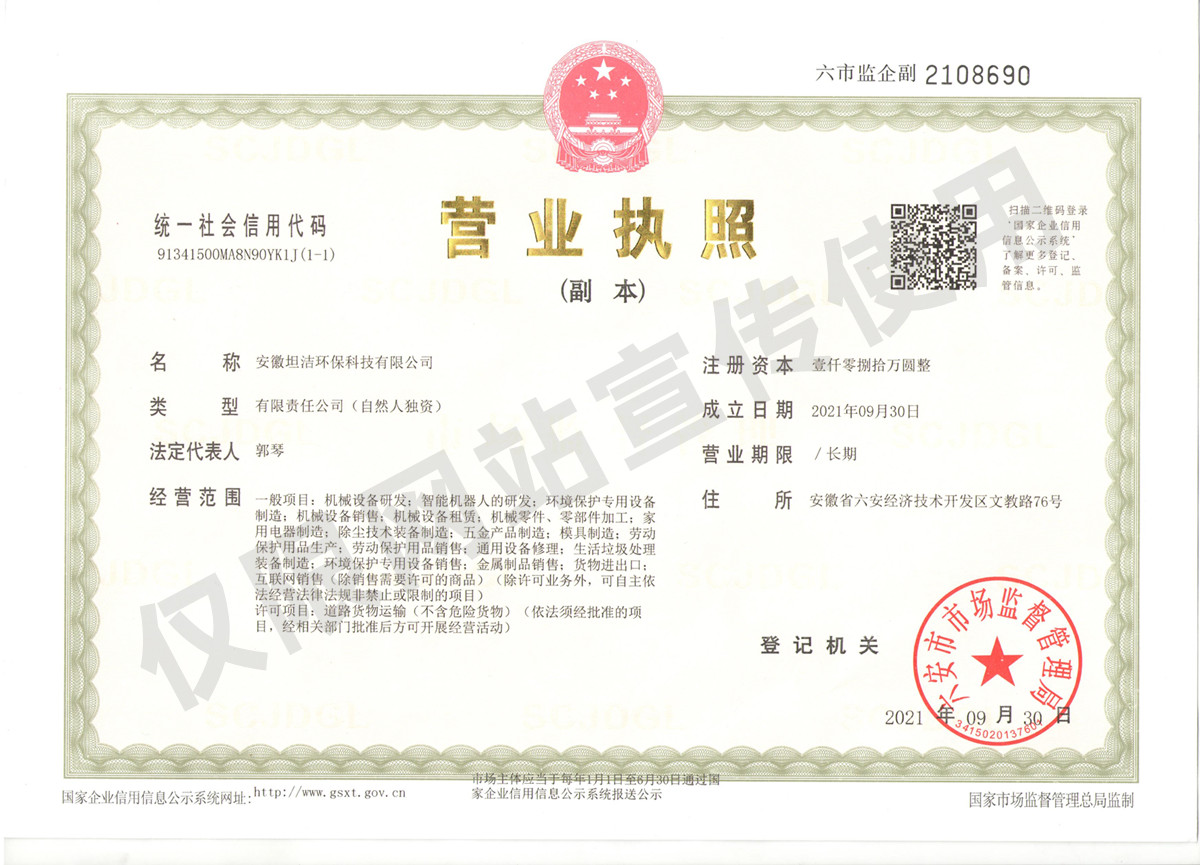 运城安徽坦洁环保科技有限公司营业执照